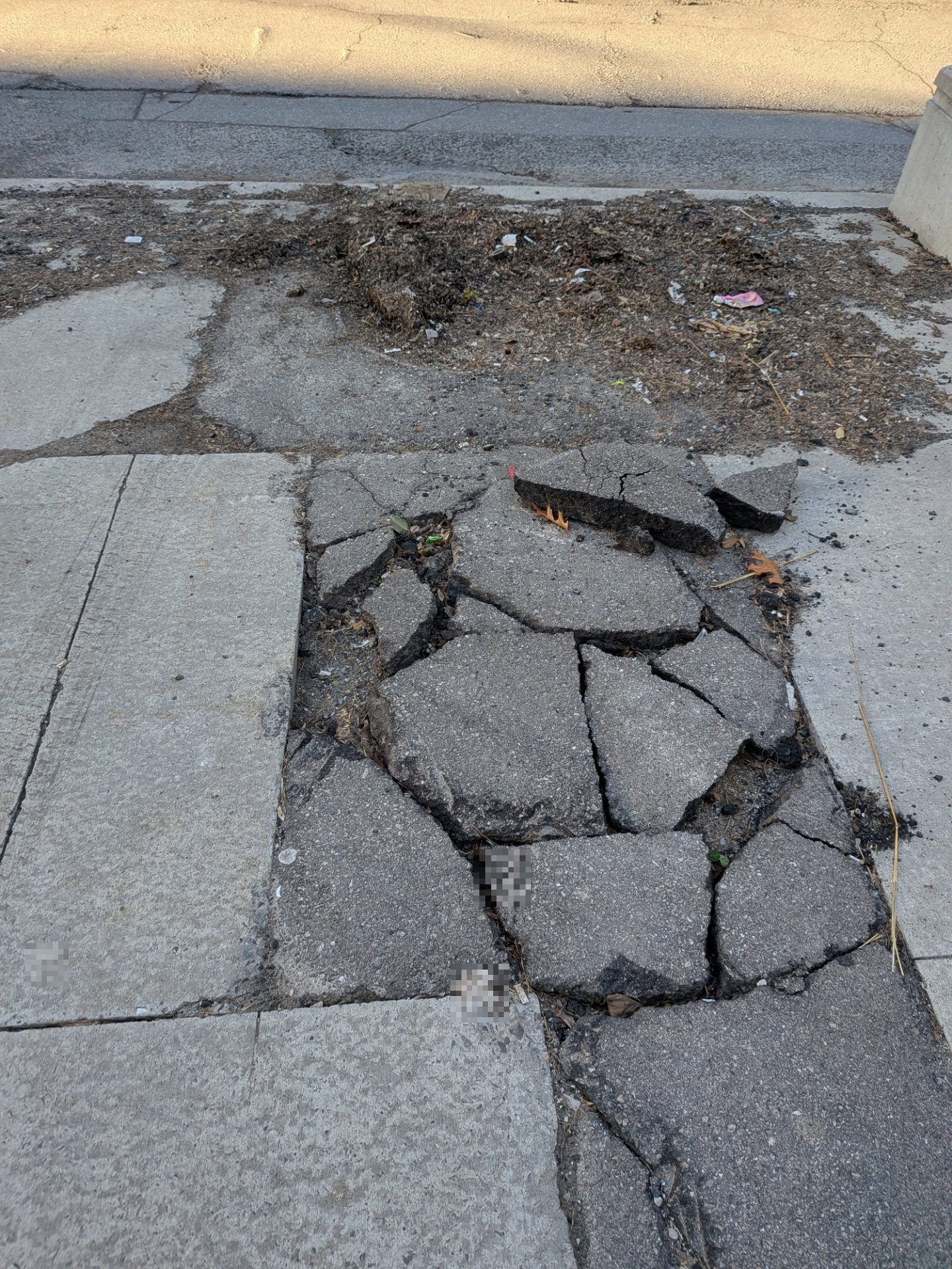 This is really bad. Not safe for anyone and you have a school and a park nearby. Hope they fix properly soon. Please update when it is done.