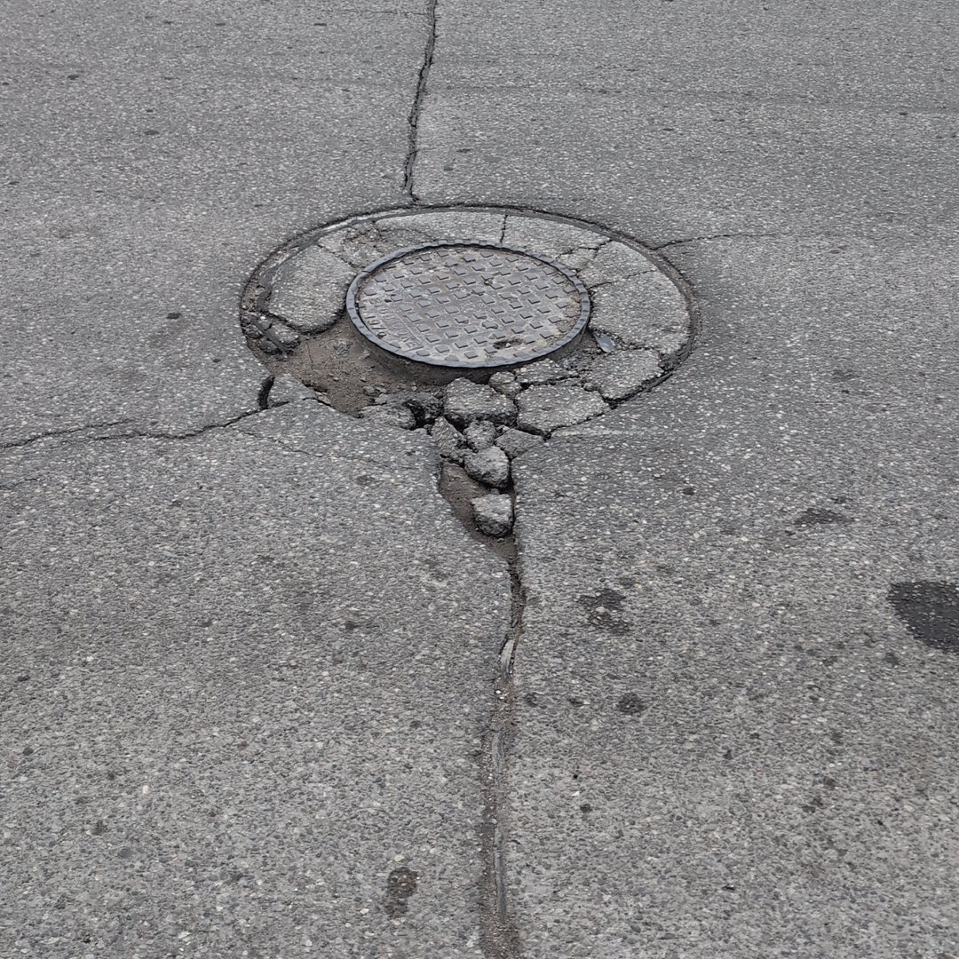 Significant road damage reported at 7 Racine Road. The area has aging drainage infrastructure with catch basins averaging 50 years old, which may be contributing to the deterioration.