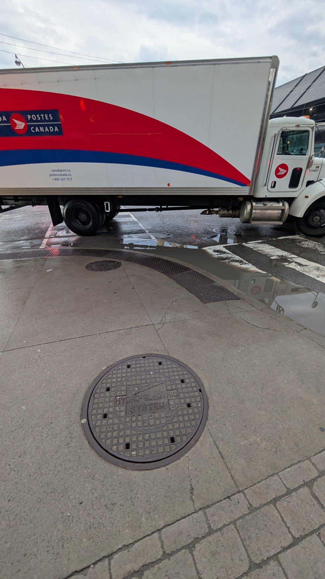 Deep puddle (3-4") forms and makes the crosswalk inaccessible, people need to walk on the road and in unpredictable ways in order to get around it, which is a safety hazard.