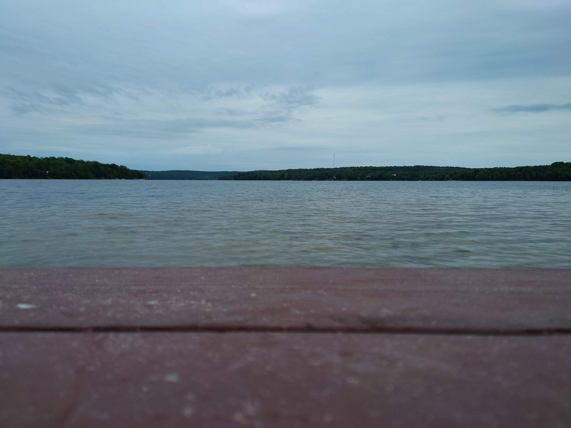 The reported catch basin #CB5002919741 at 300 Bridletowne Circle could not be verified in the submitted photo, which shows a natural waterfront scene with beach, water, and forested shoreline rather than street-level infrastructure. The location appears to be a park or natural area setting, not a Toronto street where the catch basin would be located.
