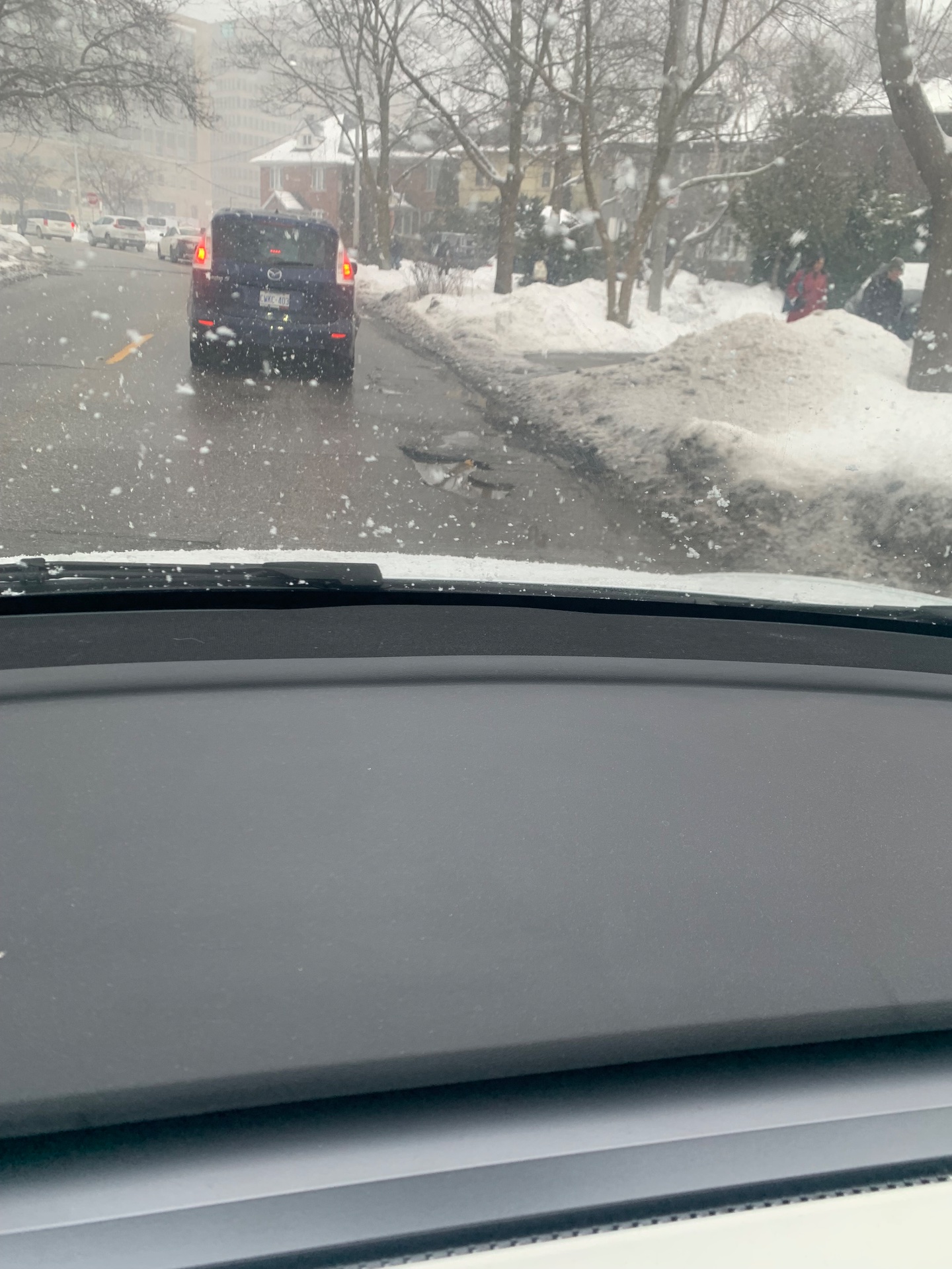 Snow and ice accumulation across Don Mills Parkway has created hazardous conditions with potholes that pose safety risks to vehicles. The street requires immediate snow clearance and pothole repair to restore safe passage for both cars and pedestrians. Snow banks are reducing visibility while road surface damage threatens vehicle safety.
