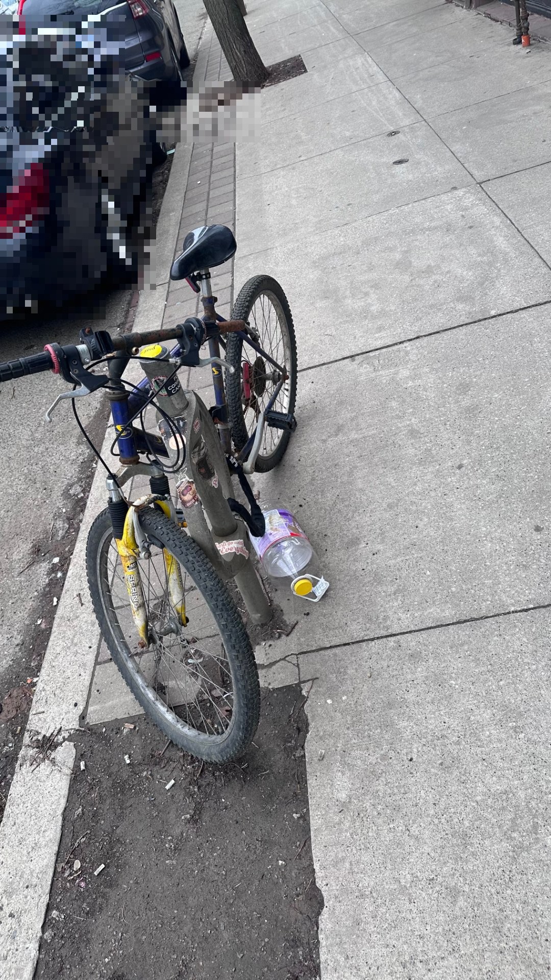 Abandoned bicycle on sidewalk