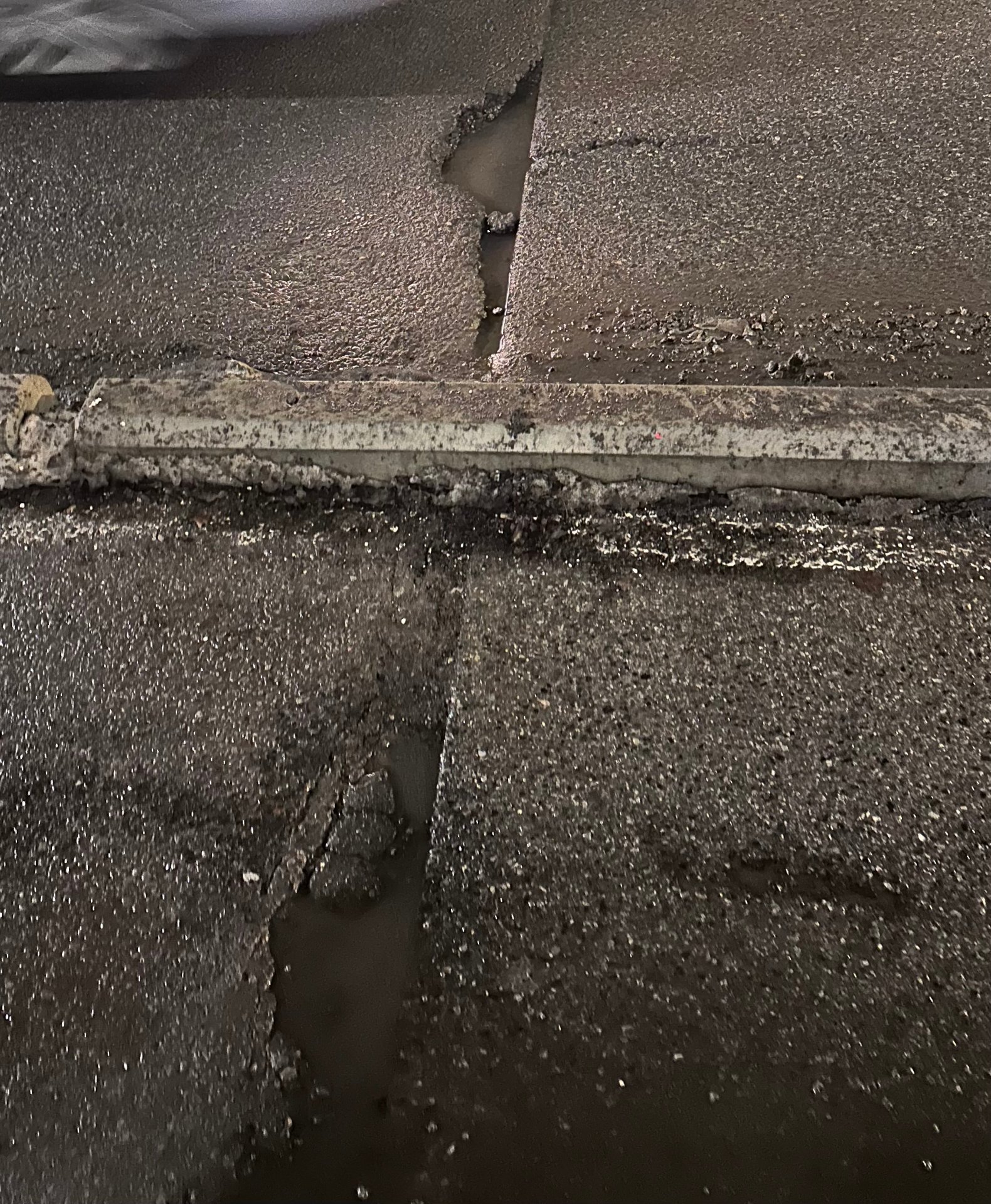 Road crack with water pooling