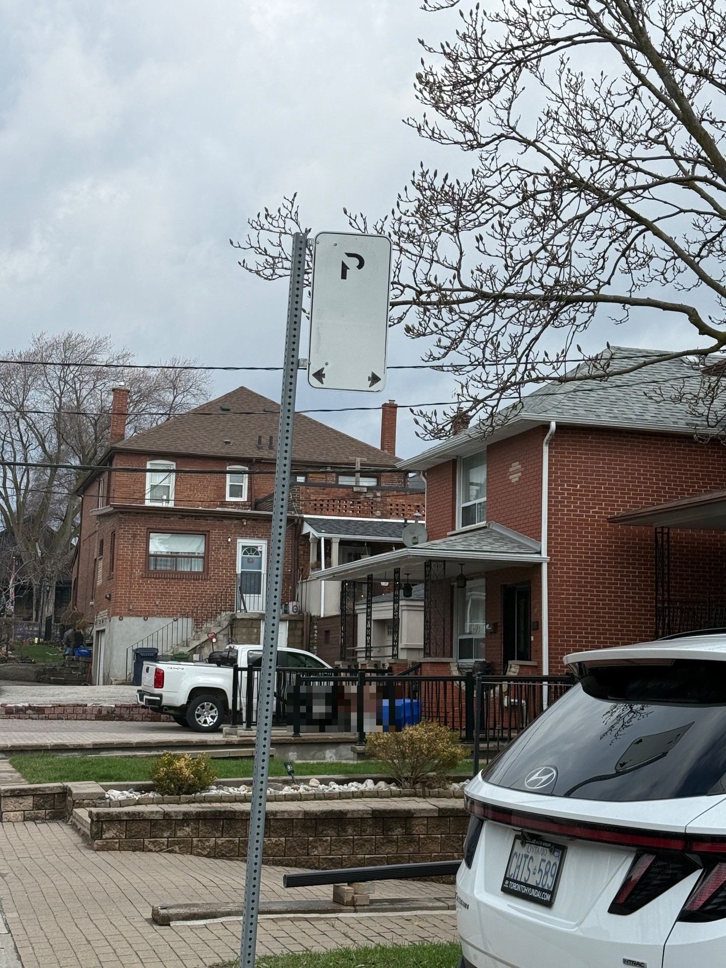 This sign is so faded with no text on it. Not sure when vehicles can or can not park.