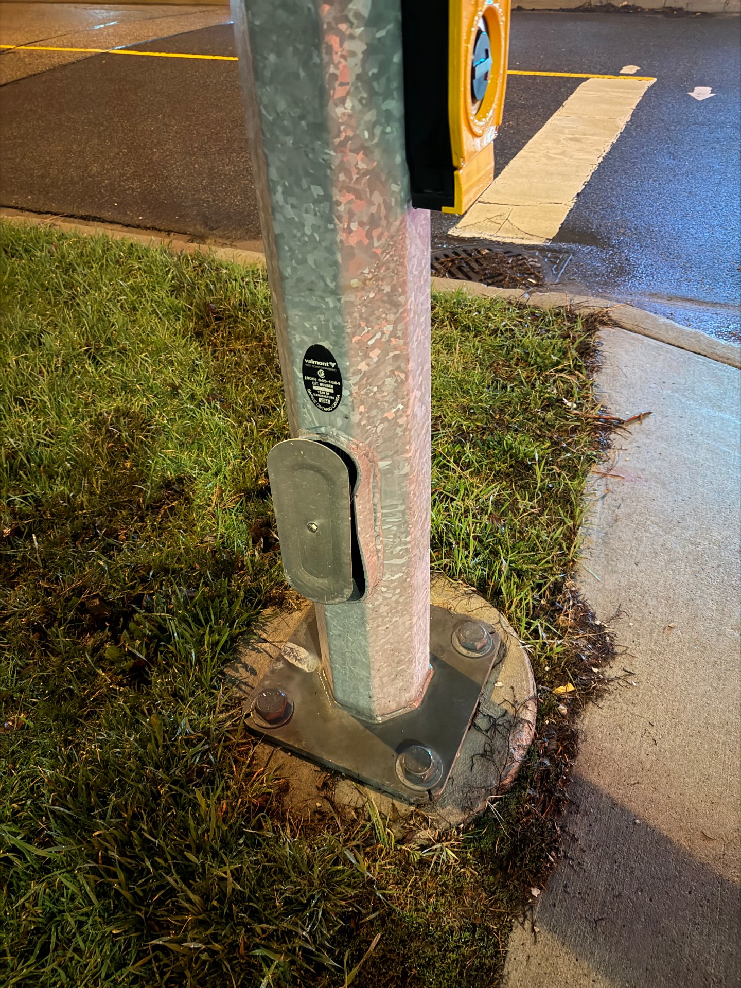 Traffic light electrical box is exposed and needs to be properly secured because there is a high voltage electrical hazard very dangerous