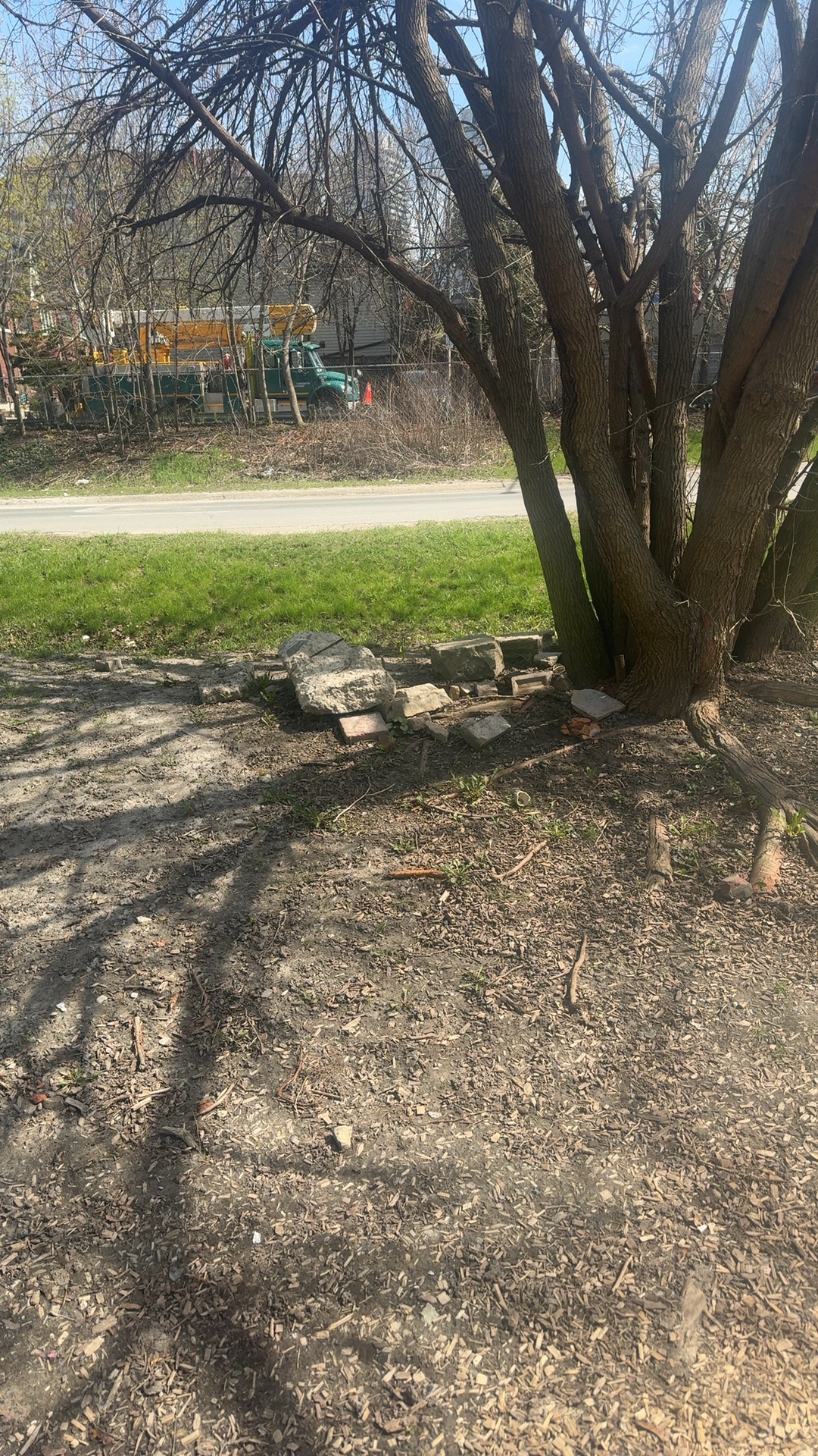 A large mature tree at 51 Power Street has multiple bare and dead branches with significant fallen wood and debris scattered beneath it, creating a tripping hazard and potential fire risk. The tree's canopy is sparse and appears diseased, with dry brittle branches that need removal. Concrete blocks are stacked at the base of the tree.