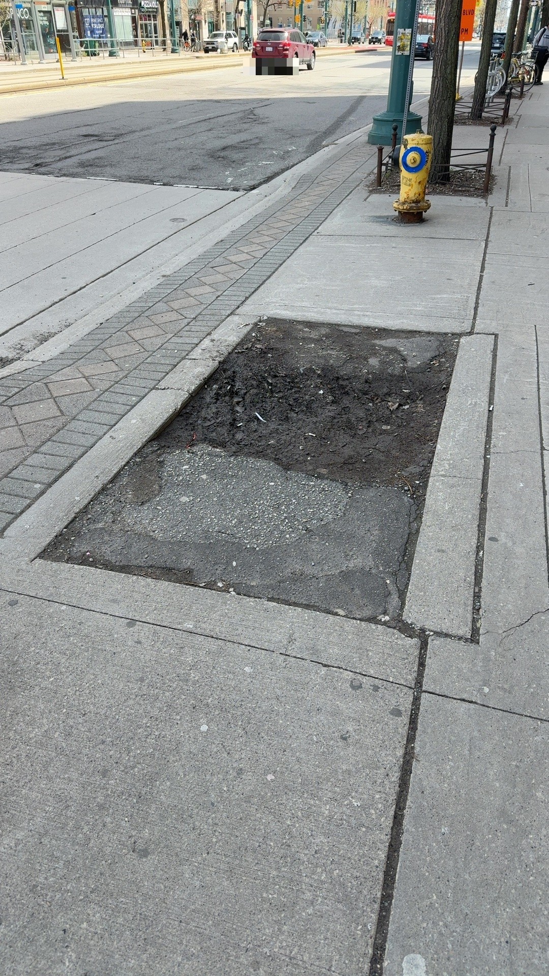 Missing tree and protective root bed plate.