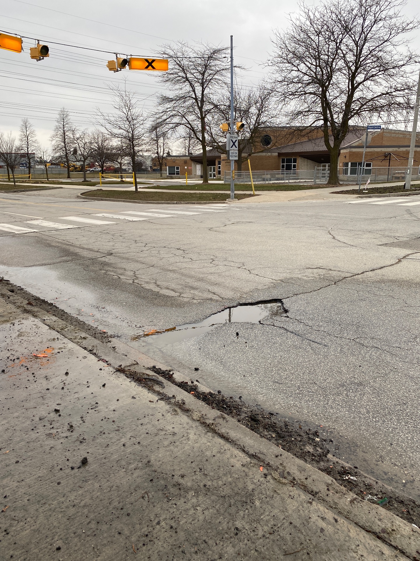 Large pothole near pedestrian cross walk
