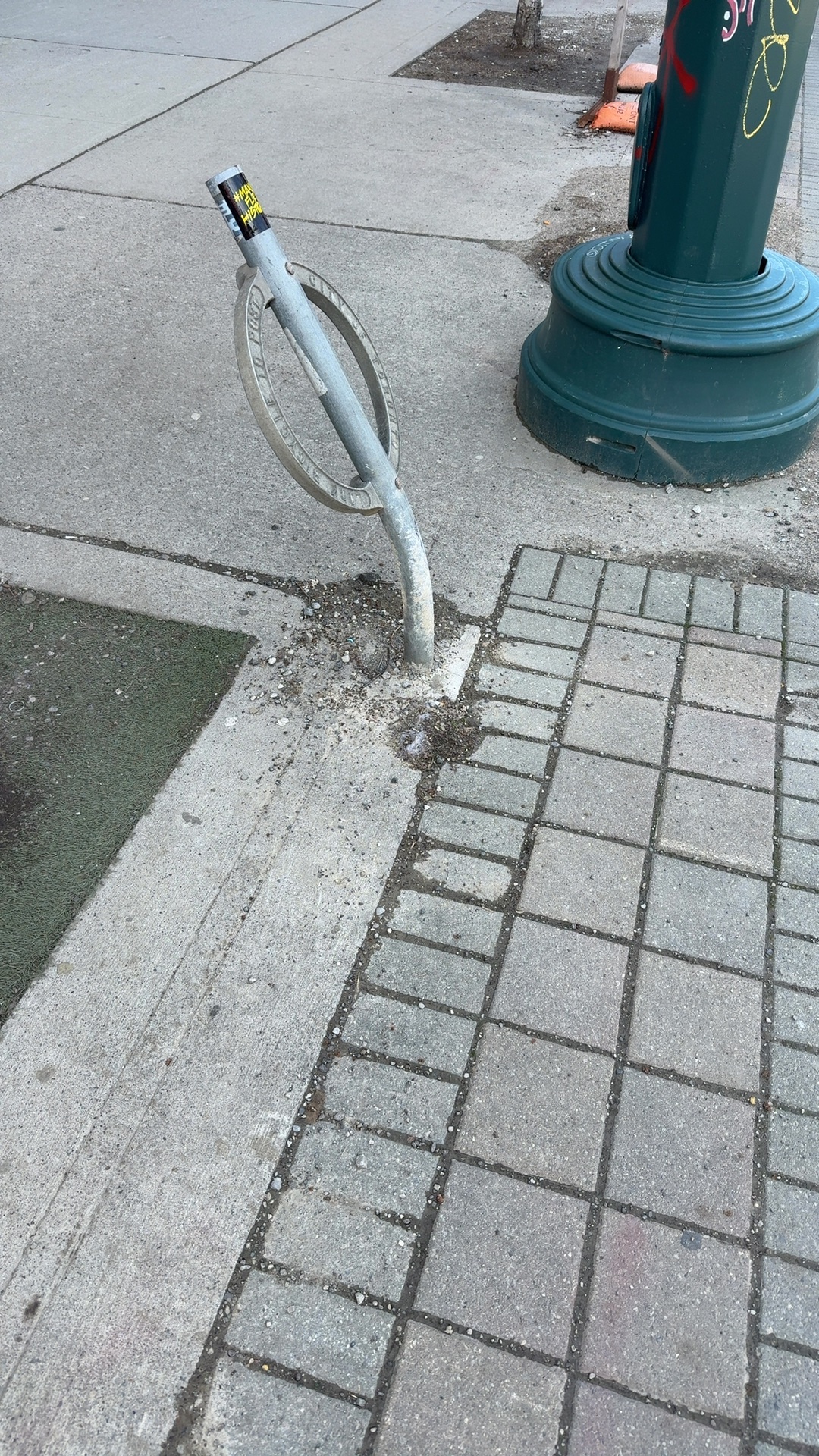 Fallen bollard creates tripping hazard
