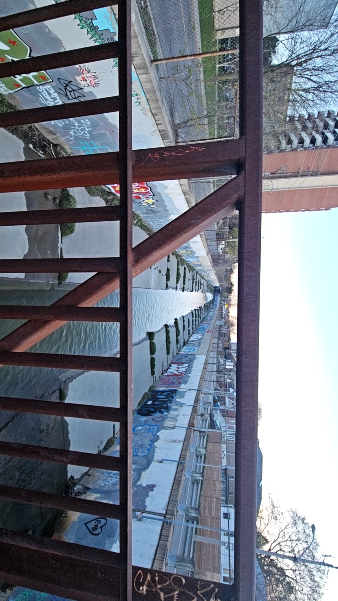 Black creek channel not kept clear of vegetation, photo taken on the bridge in front of oscar romero school, looking down the channel