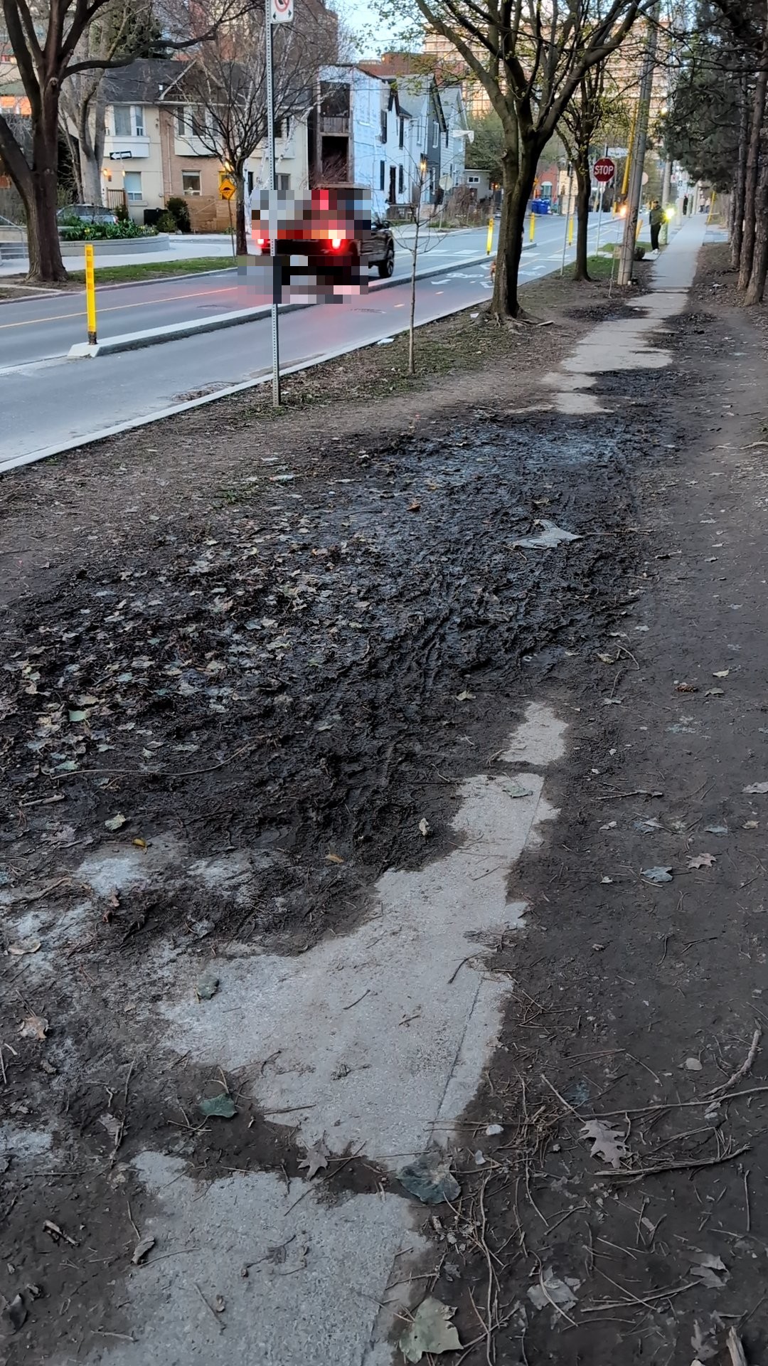 Mud consistently accumulates in this area due to a drainage issue. The sidewalk need to be redone at a higher elevation.