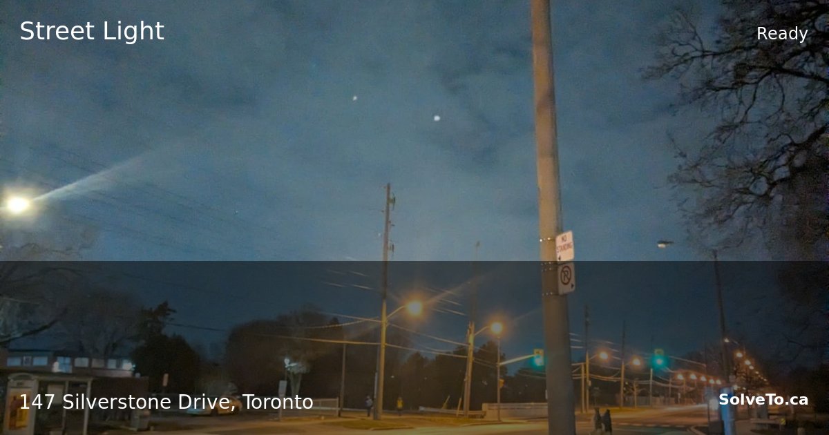 The street light at the top of the utility pole at this intersection is not functioning, creating a dark gap in the lighting along the busy road. The fixture appears burned out or damaged, which poses a safety risk for pedestrians and cyclists traveling through the area after dark.