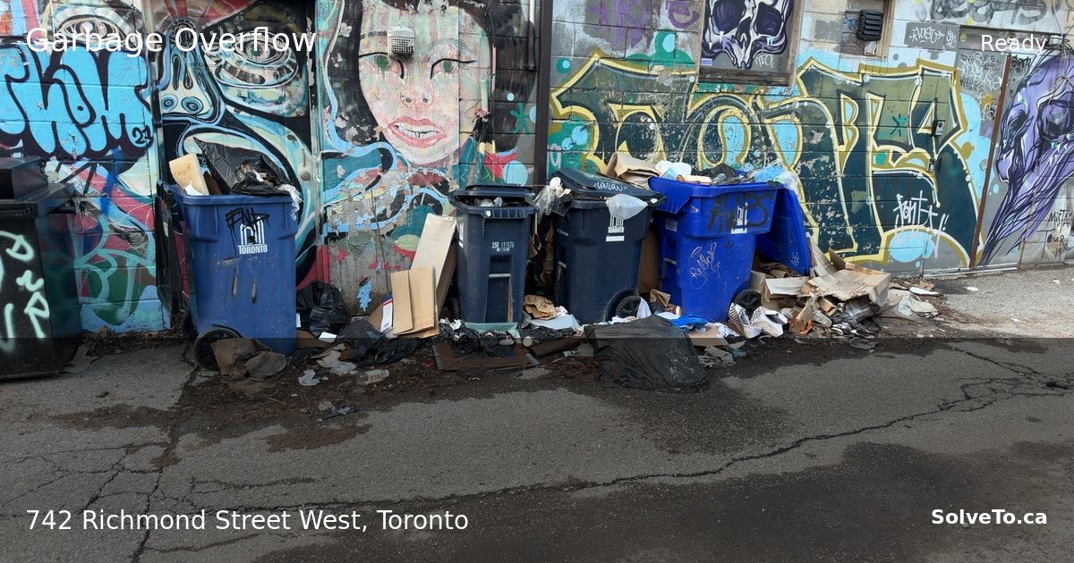 In the alley behind bluetile (not sure if it’s theres or not) there are several trash and recruiting bins that are overflowing and haven’t been picked up in at least 8months of observation.